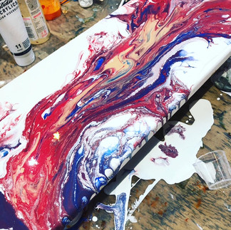 Acrylic pouring is when you make your acrylic paint a pouring consistency to achieve a wonderful canvas. There are many techniques to use and we did 2 on two canvasses. If this appeals to you, take a look at my workshop dates and come along. You would be most welcome.